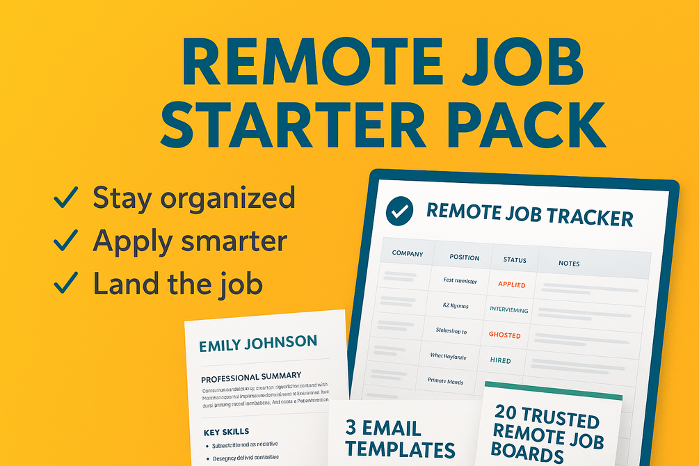 Every day you spend disorganized or sending generic applications is a missed opportunity. This starter pack puts everything you need in one place: tracking, templates, resume, job boards, and actionable guidance.